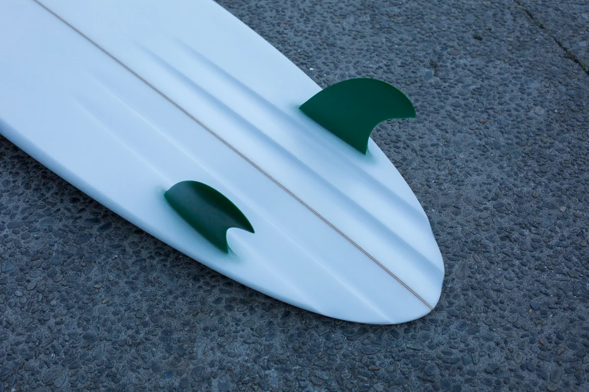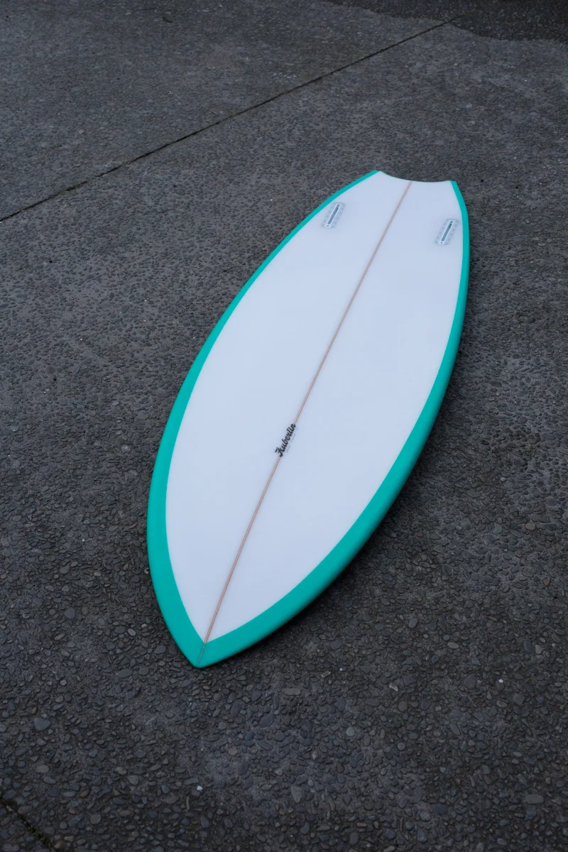 Ive been working with surfboards for the last eight years mainly as an outlet from my usual publishing and photography work. Ive spent several of these years sanding for Griffin Surfboards and also doing repairs. When it comes to building my own boards I’ve primarily focussed on performance twins, keel fishes and the odd single. Taking the best parts of the traditional designs, adding modern elements and making refinements based on what I’m feeling under my own feet and the feedback from my custom orders. The result being the ‘Salad Days’ fish and ‘Green Goddess’ twin, which are both very popular. I’m not currently shaping but if you are interested in talking further about these designs please don’t hesitate to contact me at jeremeaubertin@gmail.com.